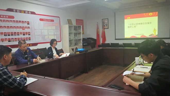 4月19日下午,我院行政党支部开展4月主题党日活动。本次活动的主题是:以坚定的理想信念筑牢精神之基,活动由支部书记顾雪萍主持。