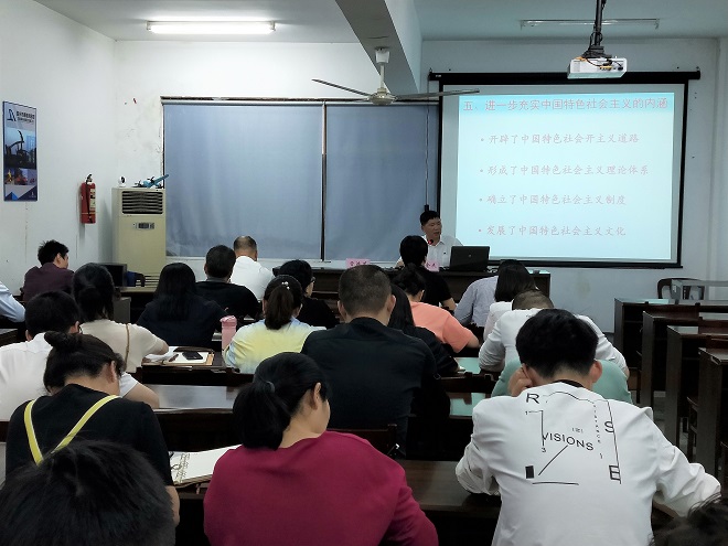 党委书记、院长徐金民在宣讲党课过程中,对我国社会主要矛盾的演变作了着重讲述,强调中国特色社会主义进入新时代,我国社会主要矛盾已经转化为人民日益增长的美好生活需要和不平衡不充分的发展之间的矛盾。