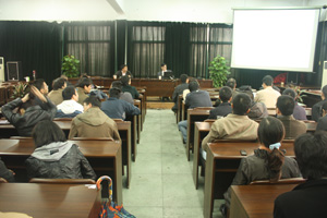 2009年11月16日下午,院名誉院长、中国科学院声学研究所李启虎院士莅临我院专题讲座并亲切会谈。