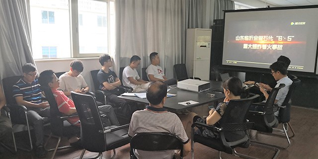 全体职工集中观看山东临沂金誉石化“6•5”重大爆炸着火事故警示片。该事件讲述了操作人员因极度疲惫,操作严重失误,致使发生液化气泄漏,且现场作业人员未能有效处置,引起重大爆炸着火事故的过程。通过观看警示教育片,旨在使广大职工从安全生产事故中吸取教训,提高认识,能够广泛深入地“查找身边的安全隐患”。