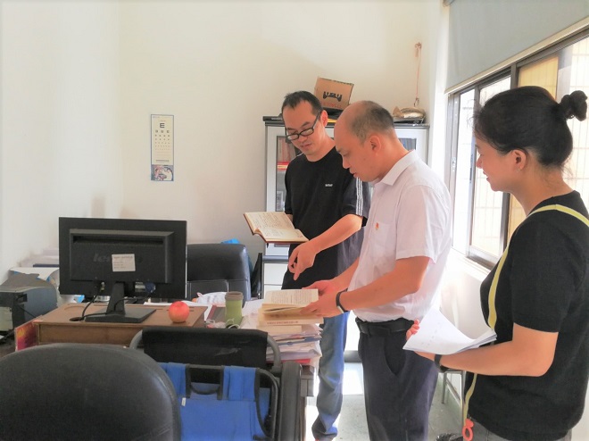根据《关于在主题教育中开展正风肃纪工作的通知》温教办发〔2019〕4号要求,永乐汇正风肃纪小组对全院专项整治整改情况、上班纪律及党员学习情况进行检查,并对党员开展主题教育应知应会知识提问考核,督促党员原原本本学原著悟原理,划重点,作批注,学深悟透习近平新时代中国特色社会主义思想。