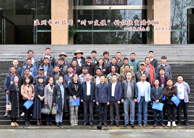 10月22日上午,温州市科技局举办为期5天的“对口支援”科技扶贫培训班,培训班在四川大学都江堰校区开班。温州市科学技术局副书记、副局长卢智远等一行温州科技干部与专家出席了开班仪式并做了重要讲话,来自阿坝县近50名合作社负责人、种植(养殖)大户、乡镇科技管理人员参加了开班典礼。