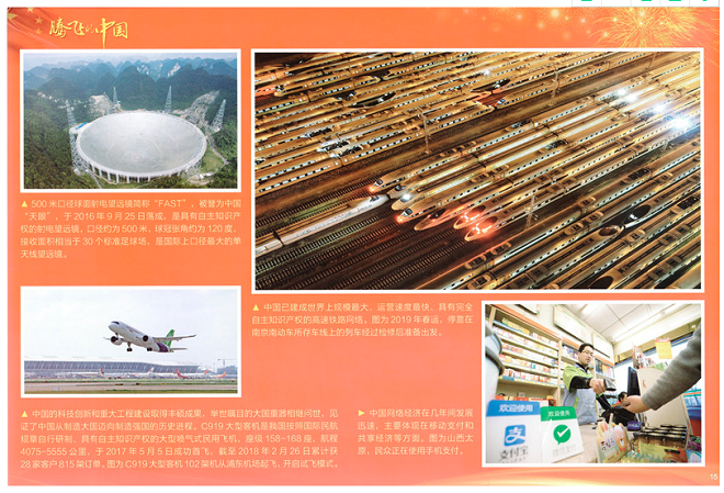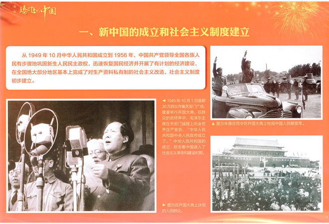 “腾飞的中国”主题系列共24张图片,展示了中国走过的不平凡历程。70年艰苦创业,70年团结奋斗,在党的领导下,70年来我们国家一步一个脚印走出来,一代代党和国家领导人用双手书写了国家和民族发展的壮丽史诗。