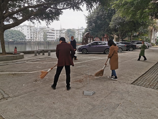 在缴纳当月党费后,全体党员诵读学习《党章》和《中国共产党党和国家机关基层组织工作条例》。随后,支部宣传委员陈晓菁领学贯彻市委十二届九次全体(扩大)会议精神。接着,全体党员到业务中心党支部卫生包干区开展“守初心、担使命、护环境”垃圾清扫活动,大家有的拿扫把,有的拿簸箕,对着包干区的卫生死角热火朝天地清扫起来。
