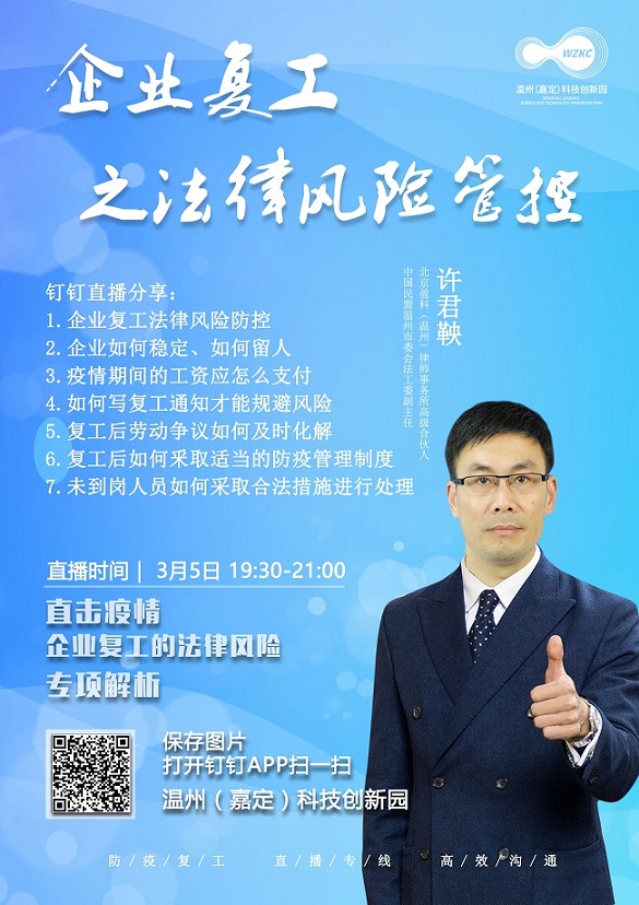 3月5日至19日,温州(嘉定)科技创新园共进行了三场线上直播,分别是《企业复工之法律风险管理》,《智能制造与机器人专场》与《人工智能传感器》,每一场的在线人次皆超过一千。