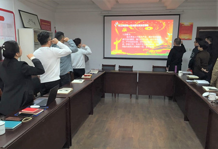 然后支部给11月份生日的四位党员过政治生日,大家在四位党员的带领下重温了入党誓词。