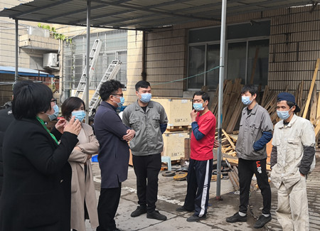 社区主任翁冠敏在磁传厂厂长夏权威的带领下,参观了磁传动设备厂并重点针对返乡人员解读国家政策,强调返乡人员需要提前了解返乡当地的疫情防控要求,及时做好准备,一一耐心解答职工们提出的困惑,倡导大家留温过年,减少人员的流动性。