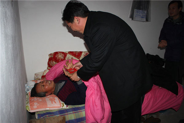2011年12月27日,院党委、院领导班子开展“送温暖” 扶贫慰问活动,结合院扶贫和农村指导员工作,先后走访文成县樟台乡东降村、百丈漈镇镇头村、新亭村近二十户特困户,为特困群众送去了慰问金和亲切温暖的问候。