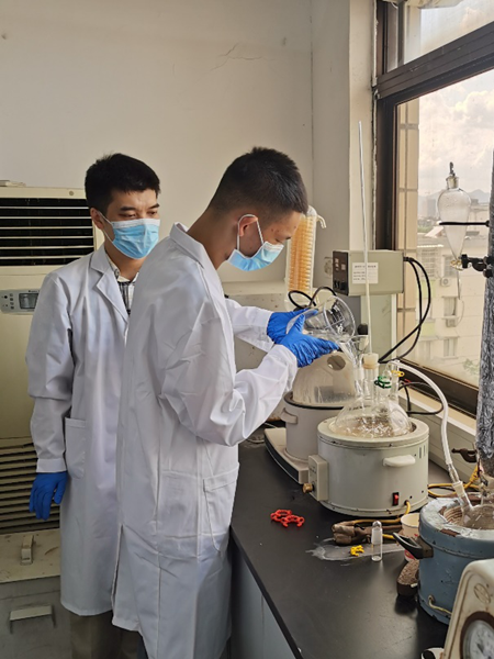 温州市实验中学为培养学生的创新意识和创造能力,举办了校园科技节活动。温州市实验中学的三名学生便以此为契机,从生活中的疑问出发,设计了相关的课题研究,并与新材料创新中心的工程师一同对课题的具体实验与分析部分进行了完善。在课题讨论会上,新材料创新中心的工程师对同学们在课题研究中遇到的问题进行了解答,并对具体实验操作分析过程提出建议。在确定好实验方案后,对三名同学进行实验安全方面的培训后,指导他们完成了薰衣草精油水蒸气蒸馏提取实验。最后在新材料创新中心工程师的协助下,对相关产品的成分进行了分析检测。