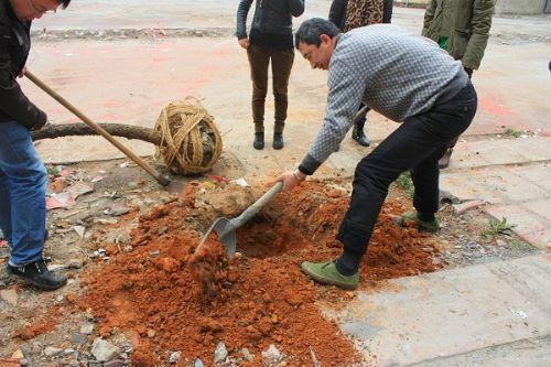 由于提供的树苗较大及地表环境不佳,植树需挖的坑深而且大,面对这些困难,我们的同志豪不含糊,大家齐动手,相互合作,挥动锄头和铁锹,雷锋精神鼓舞着我们,不觉得累,不觉得苦,一个个树坑在团员们的齐心协力下完成了,一棵棵树苗带着我们美好的愿望深深扎根在中试基地的土地上,伴随着大家的共同期许,愿树苗茁壮成长,愿我院逐年壮大,团员青年就像是这种下的树苗,在院部这块肥沃的土地上生根发芽,枝叶茂盛!