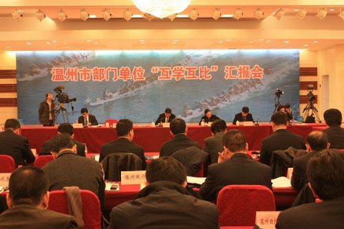 2013年1月6日下午,第二批市直单位“互学互比”活动第七组汇报会在人民大会堂举行。我院院长徐金民和领导班子参加了会议,向与会的市领导、督考专员、专家学者、“两代表一委员”汇报2012年重点工作的完成情况和2013年的十大项目。市委常委、常务副市长葛益平为我院点评。