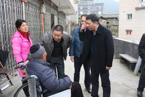 1月23日上午,我院党委书记、院长徐金民一行4人在文成县大峃镇党委副书记郑祥滩等的陪同下,赴文成大峃镇东降村开展了困难群众慰问走访活动。徐金民书记先后实地走访了5户困难群众,向他们送上了新春的问候和祝福,并送上了慰问金,每到一处都详细询问贫困户的生活状况和实际困难,鼓励他们克服困难,保持积极向上和乐观的生活态度,早日脱贫致富。