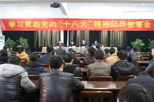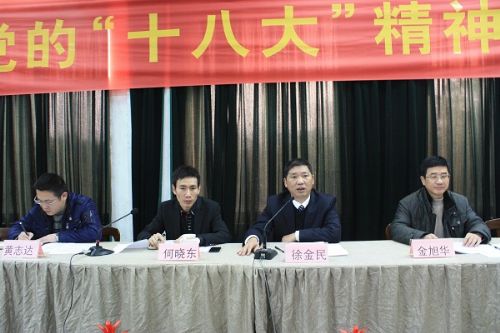 1月25日上午,我院党委召开学习贯彻十八大精神动员会,对学习、宣传和贯彻党的十八大精神进行了部署。会议由常务副院长、党委委员何晓东主持,院党委书记徐金民,党委委员金旭华、黄志达及全体干部职工参加了会议。