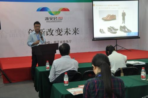 方岩在展会上发表题为《现代鞋类产品的创意设计与发展》的演讲。