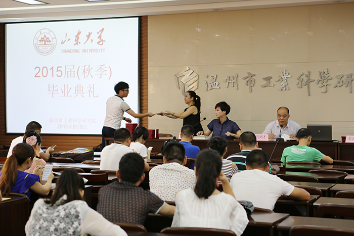 紧接着进行了2015届秋季优秀毕业生表彰仪式,评选出游历、狄彦娅、郑丽丽、吴洲、王晓程、王建东、王丽君、叶友科、李丽平、张良好、林法增、杨佳驹、廖静静、蒋琦、季章炟、傅莲莲、陈亚亚、余春静、安洁泽、吕村欢等19 名同学为山东大学温州学习中心2015届秋季优秀毕业生,教育中心为他们颁发证书与礼品,并真诚地祝福他们。随后,优秀毕业生代表游历表达了对毕业的喜悦和对老师们的感激之情,并表示会谨记老师教诲,在今后的工作岗位上努力贡献自己的力量。