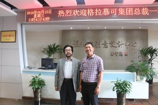 2016年6月15日,日本格拉慕可集团总裁山田敦郎一行,在温州市工业科学研究院院长徐金民和常务副院长何晓东的陪同下,来到温州市创意设计中心参观访问。