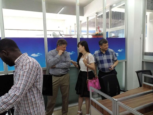 2017年6月6日上午,美国桥水州立大学亚洲事务部主管余前文教授,航空科学系主任Michael Francis Farley,以及温州大学国际教育学院师生一行共35人来我院通航创客园参观交流。我院光电所张加民所长带领客人参观了通航创客园区,并与部分创业团队进行了交流。我院通航创客园新引进的创业团队负责人吴天锋就海康威视机器视觉、智能机器人等技术在温州传统企业的应用推广与余教授及外国专家作了深入交流。该团队目前处于起步发展阶段,已经与温州正泰集团、爱好笔业等企业建立了业务关系,对通航及机器视觉方面人才需求量较大,双方在航空专业学生就业方面达成了意向。