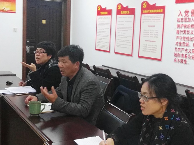 在通报到会情况、检查佩戴党徽、奏唱红歌、重温入党誓词、收缴党费等一系列规定动作后,第一支部书记顾雪萍首先通报了支部11月份工作总结,然后带领大家学习了党的十九大报告后半部分。期间院党委书记徐金民从教育、医疗和幸福感、获得感等方面重点评述了十九大带来的民生福祉。最后,顾雪萍通过PPT演示,深入解读了十八届中央纪委工作报告,让大家对严肃党内政治生活,切实强化党内监督,坚定不移地推进全面从严治党有了更深刻的认识,整个活动时长三个小时。