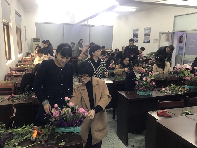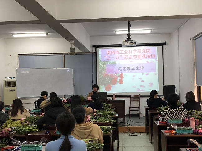 为庆祝国际“三八”妇女节,丰富广大女性职工的精神文化生活,3月8日上午,我院工会组织开展“花艺装点生活”庆三八妇女节插花培训。活动邀请来自温州科技职业学院的徐双双老师进行现场培训,我院30来名女性职工参加了本次活动。