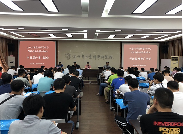 2018年度,山东大学温州学习中心与温州市机电技术协会共举办了两次学历提升推广会,共组织机电相关从业人员280余人参加,最终有70余人确定报名山大学历教育。