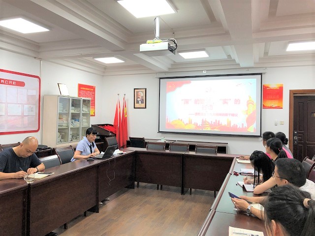 屠丽环就“深”的要求,“实”的行动这一主题,围绕如何贯彻落实党的十九大精神,提出“深”,就是要从已有的逐字逐句、原汁原味的通读,进入到突出主题、抓住重点的精读;“实”是建立在有重点、有专题、有研讨的深入学习、深刻领会基础上,通过务实行动、扎实贯彻,进行了详细阐述。党课内容鲜明、内涵丰富、举例典型,具有很强的指导意义。