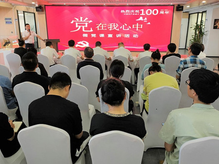 为庆祝中国共产党成立100周年,推动永乐汇党史学习教育深入开展,5月27日下午,永乐汇联合鹿城鞋业产业创新服务综合体(以下简称综合体)开展“学党史 守初心 担使命 开新局”暨庆祝建党百年系列之一——“党在我心中”微党课宣讲活动,永乐汇全体党员、综合体工作人员和18家入驻企业代表等参加活动。永乐汇党委书记徐金民,党委委员张加民,支部书记夏权威、顾雪萍,企业代表江艳芳通过宣教宣讲的形式,开展微党课宣讲,推进党史学习教育入脑入心。