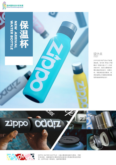 同时,我院创意公司设计的作品《保温杯》从来自18个国家和地区共计5000余份参赛作品中脱颖而出,ZIPPO保温杯经典标识搭配纯色系瓶身,优秀的旋薄工艺搭配经典的瓶型营造出独特的原创设计风格,获得了时尚设计类专业组金奖的耀眼佳绩。