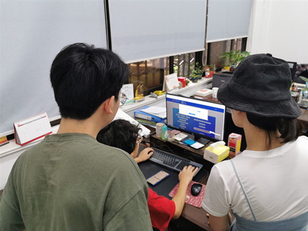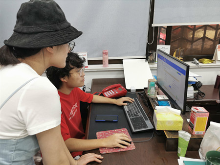 在C101办公室,函授教育主要负责人陈晓菁、吴丽娟老师针对学员在报考过程中遇到的问题和困难进行现场答疑解惑,辅助他们进行报名。
