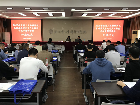 为加快推进传统产业转型升级,促进电气产业智能化改造提升,打造世界级先进电气产业集群。11月20日上午, “应用工业物联网技术助推我市电气产业转型升级专题研修班”在我院隆重开班。温州大学物理与电子信息工程学院吴桂初教授、温州市工业科学院科技人才服务中心主任顾雪萍出席了开班仪式。