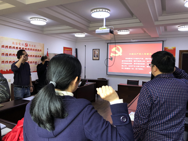 首先,支部组织纪检委员王凡非通报二月党费收缴情况,并收纳了三月党费。接着,在重温了入党誓词后,全体党员齐声诵读党章(党员的义务)。
