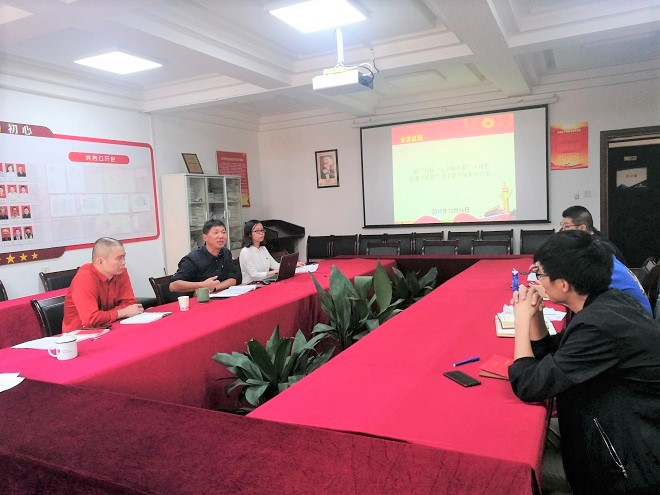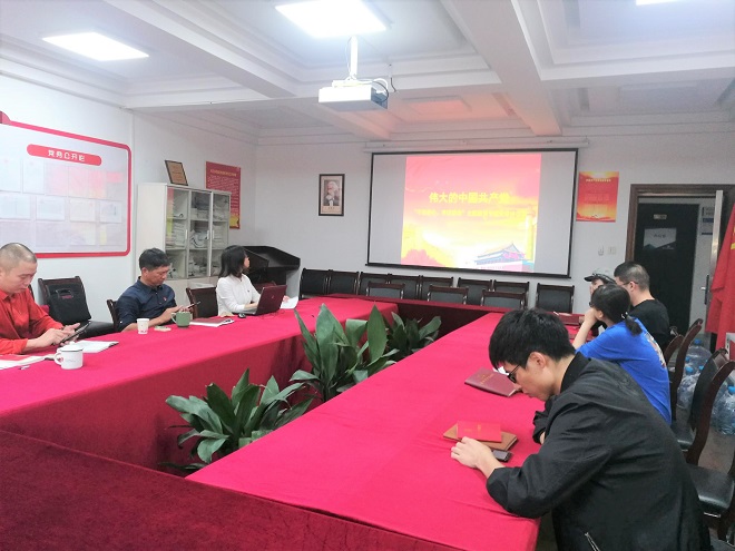志愿活动结束后,大家来到三楼党员活动室开始本月的主题党日学习讨论。顾雪萍书记带领全体党员认真学习习近平总书记庆祝新中国成立70周年大会上的重要讲话和全市“不忘初心、牢记使命”主题教育专题党课精神。一起学习《党章》并观看视频《不忘初心学党章》后,大家都觉得对党章的理解更加透澈了。