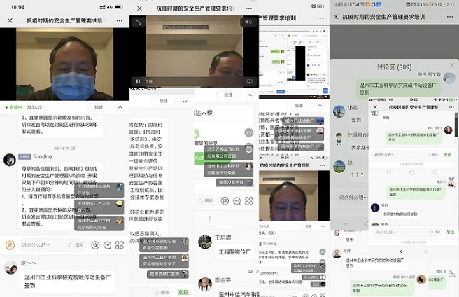 3月12日晚,我院磁传动设备厂组织全体职工开展安全生产培训。此次培训由温州市应急管理局联合浙江安防职业技术学院,通过微信网络教学方式开展,今天直播的主题是:《抗疫时期的安全生产管理要求培训》,由安全工程高级工程师陈兵老师讲解。